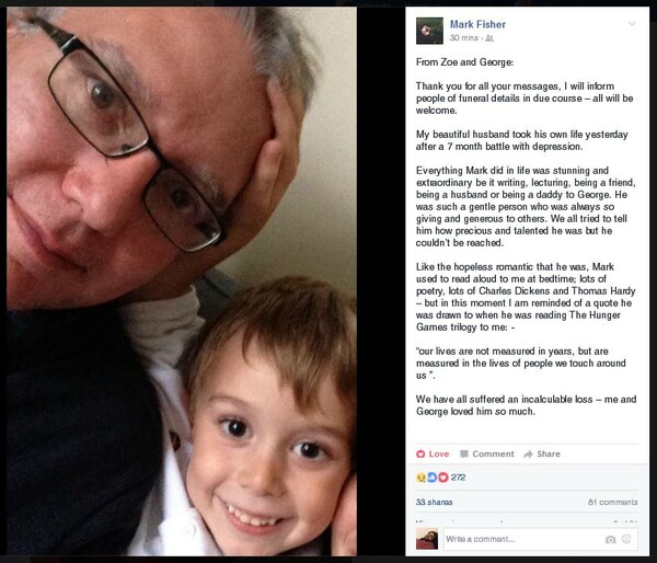 Το τελευταίο ποστ του στο μπλογκ του K-punk, πριν το κλείσει οριστικά τον Ιούλιο του 2015, είχε τίτλο LOOK WHAT FEAR 'S DONE TO MY BODY /Δες τι έκανε ο φόβος στο σώμα μου, από το ομώνυμο τραγούδι των Magazine.
