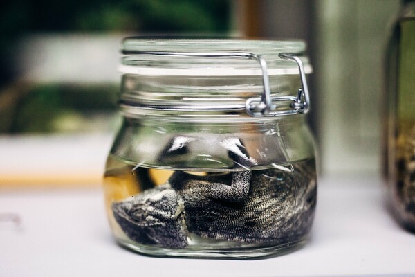 Δεν είναι όμως μόνο τα έμβια πλάσματα που δίνουν χαρακτήρα στο γραφείο-εργαστήριο της Μαρίας, αν αναλογιστεί κανείς το πόσα ταριχευμένα πουλιά και τεμαχισμένα ερπετά μπορεί να βρει κανείς σε κάθε του γωνία. «Τα συντηρούμε σε οινόπνευμα», μου εξηγεί η Μαρία, ανοίγοντάς μου πρόθυμη τα ντουλάπια του γραφείου της, να μου δείξει την συλλογή της. Μέσα σε αυτά μια σειρά, ελαφρώς γκροτέσκα, από βαζάκια μαρμελάδας γεμισμένα με μικρά ερπετά. «Δεν μου αρέσει να σκοτώνω ζώα για να τα μελετήσω, οπότε παίρνω μόνο όσα βρίσκω χτυπημένα στο δρόμο. Άλλες φορές πάλι, μπορεί να αρκεστώ σε μια φωτογραφία τους. Δεν είμαι επαγγελματίας φωτογράφος. Χρησιμοποιώ την φωτογραφία περισσότερο ως τεκμήριο ότι το ζώο ήταν στο συγκεκριμένο σημείο. Αν πάρεις το ζώο στο εργαστήριο, αργά ή γρήγορα θα πεθάνει». Ανάμεσα στα βαζάκια, ξεχωρίζει εκείνο με τον χαμαιλέοντα της Πύλου, που ήταν και το αντικείμενο της διπλωματικής εργασίας της Μαρίας στο μεταπτυχιακό της στην ζωολογία. Εκείνη την περίοδο χρειάστηκε να τεμαχίσει πολλούς τέτοιους χαμαιλέοντες για να μάθει τις διατροφικές τους συνήθειες. «Είναι παρεξηγημένα ζώα οι χαμαιλέοντες», θα μου έλεγε αργότερα για το μικρό ζώο που μελετά τόσα χρόνια, «θυμάμαι μια φορά έναν κύριο που το είδε και άρχισε να φωνάζει πως είναι οχιά. Εγώ το έπιασα, το σήκωσα και του είπα: ‘σαυρίτσα είναι άνθρωπέ μου, δες την καλύτερα πριν φωνάξεις’».