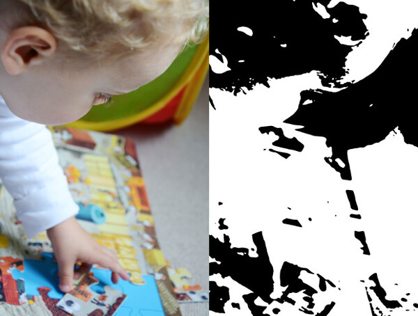 Μετά κοιτάξτε στη φωτογραφία ενός μωρού που ασχολείται με ένα πάζλ. Αν ξανακοιτάξετε την πρώτη φωτογραφία, μπορείτε τώρα να εντοπίσετε την εικόνα αυτού μωρού να διακρίνεται στο ασπρόμαυρο σχέδιο;