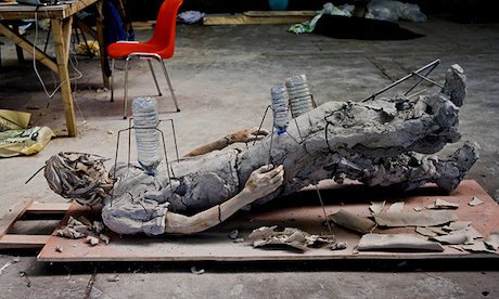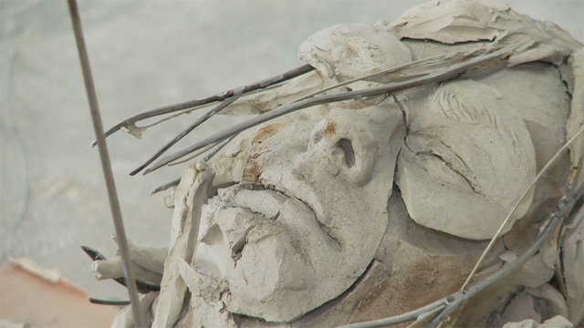 Φθηνά υλικά αλλά πολύ δυνατό συναίσθημα. Ο Κερτ Κομπέιν από πηλό, με καρφωμένα πάνω του σίδερα και πλαστικά μπουκάλια νερού. Με μια ματιά στο εργατήριό του πιστεύει κανείς πως πρόκειται για αναβίωση του κινήματος της Arte Povera.