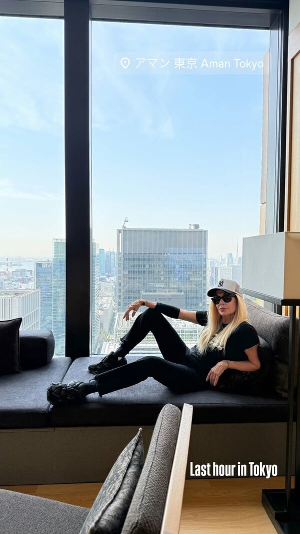 Μάλιστα σε μία από τις φωτογραφίες που ανήρτησε στα social, βρίσκεται στο ξενοδοχείο Aman Tokyo, το οποίο βρίσκεται στον τελευταίο όροφο ουρανοξύστη της πόλης και προσφέρει πανοραμική θέα, ενώ σε ένα βίντεο ψωνίζει σε φαρμακείο.
