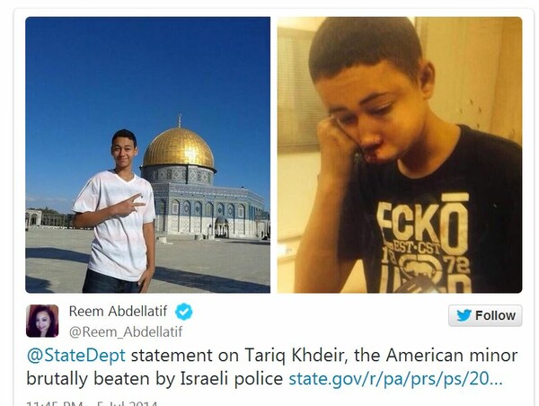 Οι συγγενείς του αγοριού κατήγγειλαν πως τα δύο βίντεο από δύο διαφορετικές οπτικές γωνίες αποκαλύπτουν ξεκάθαρα πως οι δύο αστυνομικοί χτυπούσαν και κλωτσούσαν τον 15χρονο Tariq Khdeir ο οποίος έχει παλαιστινιακή και αμερικανική καταγωγή και είναι δευτεροετής του γυμνασίου στη Φλόριντα των Η.Π.Α.