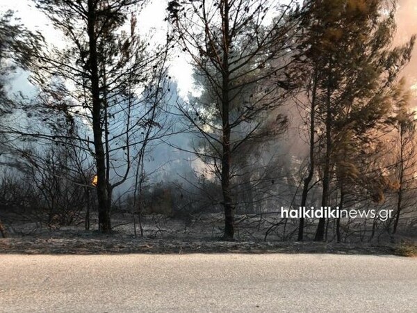 Ανεξέλεγκτη συνεχίζει να μαίνεται η μεγάλη πυρκαγιά που ξέσπασε τα ξημερώματα στη Σιθωνία Χαλκιδικής, με τις φλόγες να εκτείνονται στα τρία χιλιόμετρα, καθώς το έργο της πυρόσβεσης δυσχεραίνουν οι ισχυροί άνεμοι που πνέουν και φτάνουν κατά διαστήματα τα 7 μποφόρ.