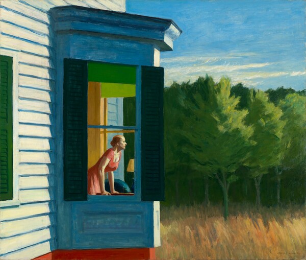Ένα παράδειγμα αποτελεί το έργο του 1950 με τίτλο «Πρωί στο Cape Code», όπου μια γυναίκα κοιτάζει έξω από το παράθυρο ενός σπιτιού. Το πρόσωπό της λούζεται από το φως του ήλιου, ενώ εκείνη κοιτάζει κάτι που ο θεατής δεν μπορεί να δει, επειδή βρίσκεται εκτός της περιοχής που αναπαριστά ο πίνακας. Τι θα μπορούσε να είναι άραγε; Αυτό είναι κάθε φορά το ερώτημα που αναδύεται. Στις τοπιογραφίες του Hopper ό,τι είναι ορατό έχει και ένα υποκειμενικό αόρατο αντίβαρο, του οποίου ο ορισμός εναπόκειται στον θεατή.