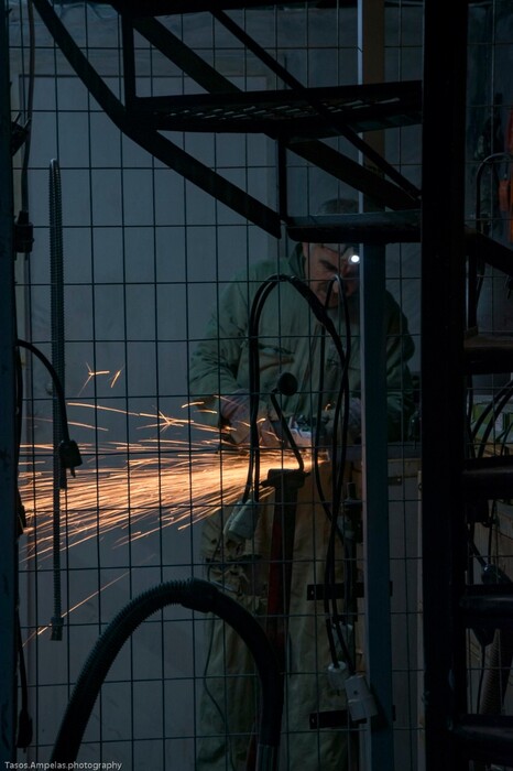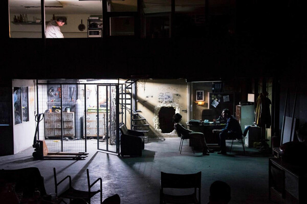 Η παράσταση δεν απείχε πολύ από μια εκρηκτική, σχεδόν «κινηματογραφική» εμπειρία, σε έναν χώρο καθόλα ρεαλιστικό, χωρίς θεατρικό φωτισμό αλλά με τα φώτα ενός κανονικού μηχανουργείουΦωτο: Τάσος Αμπελάς