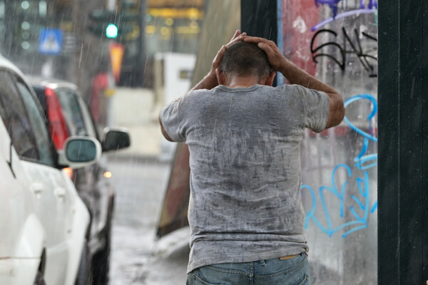 Ισχυρό μπουρίνι έπληξε την πρωτεύουσα, με το νερό να κατακλύζει δρόμους και να αναγκάζει τους Αθηναίους να βγάλουν ομπρέλα παραμονές Δεκαπενταύγουστου.