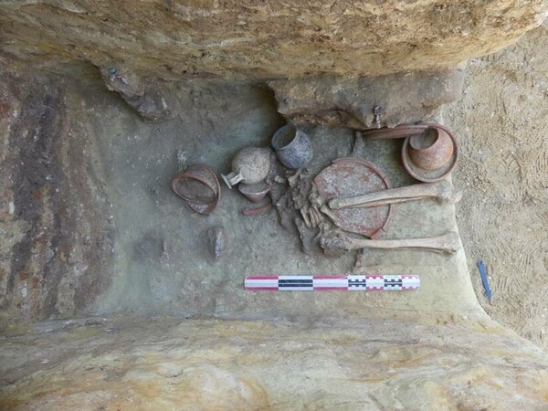Οι σκελετοί - παιδιών, γυναικών και ανδρών - ήταν θαμμένοι σε ξύλινα φέρετρα. Οι νεκροί είχαν θαφτεί μαζί με διάφορες προσφορές, όπως κεραμικές κανάτες, κύπελλα, πιάτα και γυάλινα σκεύη.