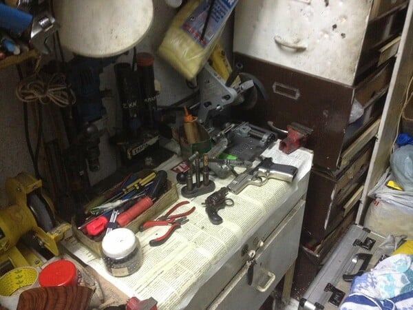 Οι αστυνομικοί βρήκαν πλήρη εξοπλισμό και εργαλεία για την κατασκευή, επισκευή, τροποποίηση και μετασκευή των όπλων. Επίσης, βρήκαν, μεταξύ άλλων, πιστόλια, περίστροφα, πολεμικά τυφέκια, καθώς και πολλά πυρομαχικά.