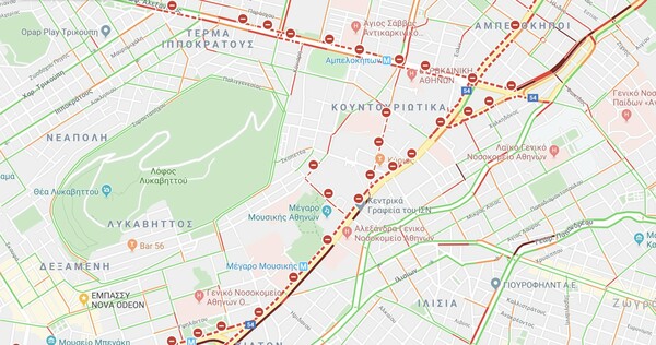 Μέχρι αυτή την ώρα, απροσπέλαστα είναι, κατά τμήματα τα δύο ρεύματα της λεωφόρου Βασιλίσσης Σοφίας, τμήμα της Ακαδημίας και η 28ης Οκτωβρίου. Αντίθετα δόθηκαν στην κυκλοφορία Βασ. Αμαλίας, Πανεπιστημίου και Σταδίου
