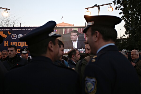 Οι ένστολοι διαδηλώνουν στο Σύνταγμα κατά της κυβέρνησης και των περικοπών στους μισθούς τους