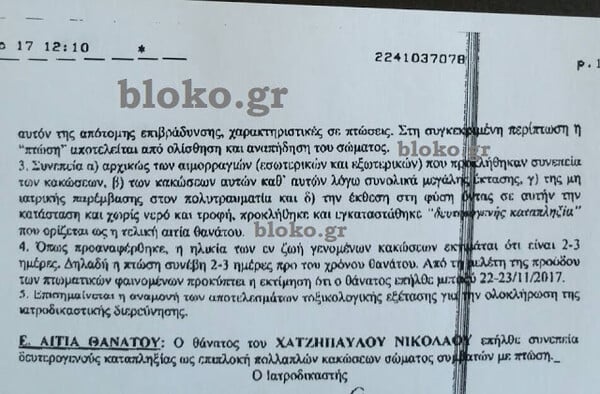 H έκθεση που συνέταξε ο αρμόδιος ιατροδικαστής Ρόδου αποκαλύπτει τις συνθήκες κάτω από τις οποίες έχασε τη ζωή του ο άτυχος φοιτητής, Νίκος Χατζηπαύλου στην Κάλυμνο.
