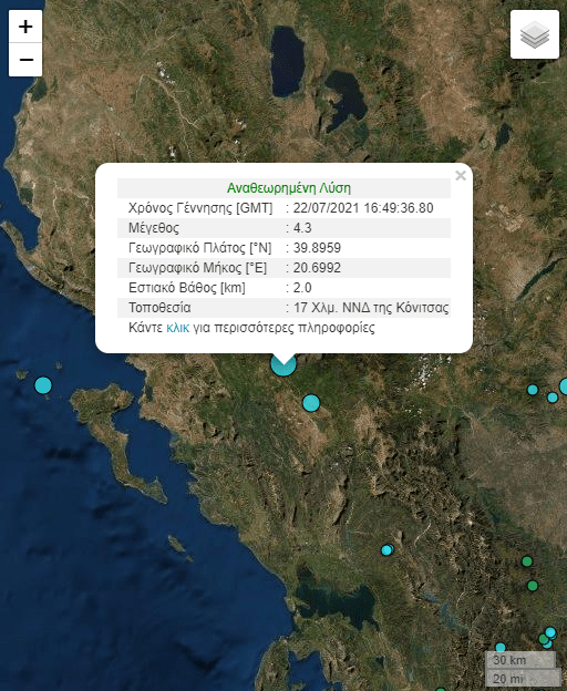 Η σεισμική δόνηση σημειώθηκε στις 19:49, σε εστιακό βάθος 2 χιλιομέτρων, ενώ το επίκεντρο ήταν 17 χιλιόμετρα νότια- νοτιοδυτικά της Κόνιτσας, σύμφωνα με το Γεωδυναμικό Ινστιτούτο του Εθνικού Αστεροσκοπείου Αθηνών.