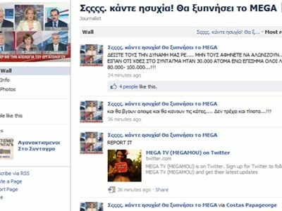 Χθες «αγανακτισμένοι» πραγματοποίησαν συγκέντρωση έξω από τα κτίρια του ΜΕΓΚΑ στη Μεσογείων διαμαρτυρόμενοι για τον τρόπο προβολής των ειδήσεων ενώ στα προφίλ των «αγανακτισμένων» στο Facebook το ραντεβού ανανεώνεται για αύριο το βράδυ έξω από το Σκάι στο Φάληρο.