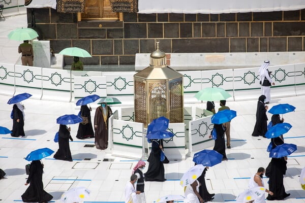 Παρότι στο προσκύνημα στη Μέκκα, τον πιο ιερό τόπο του Ισλάμ, προσελκύει κάθε χρόνο εκατομμύρια ανθρώπους, φέτος οι προσκηνητές που κινούνταν γύρω από το ιερά Κάαμπα (το κτίσμα μέσα στο τζαμί Μασγίντ αλ-Χαράμ) σε ομόκεντρους κύκλους ήταν λιγοστοί, φορούσαν μάσκες και τηρούσαν αποστάσεις.