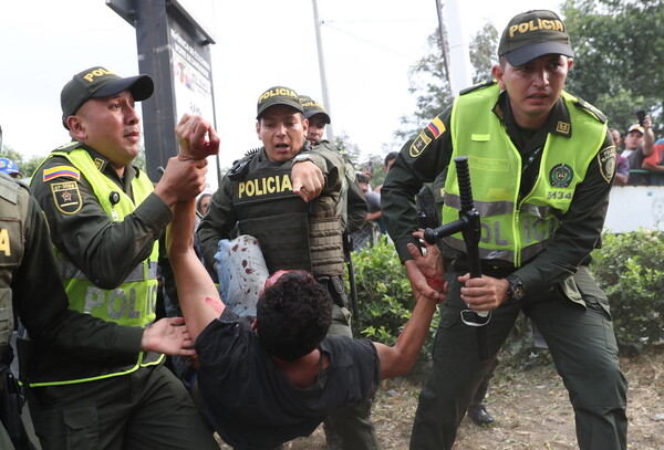 Ο Γκουαϊδό καταδίκασε τα βίαια επεισόδια της χθεσινής ημέρας. Οι δυνάμεις ασφαλείας κατέστειλαν τους υποστηρικτές της αντιπολίτευσης κι εμπόδισαν διά της βίας τη διέλευση φορτηγών με ανθρωπιστική βοήθεια από τη μεθόριο. Η βοήθεια αυτή, τρόφιμα και φάρμακα, εστάλη κυρίως από τις ΗΠΑ, κατόπιν αιτήματος του Γκουαϊδό, και το μεγαλύτερο μέρος της είχε αποθηκευτεί ως χθες στην Κουκουτά, ενώ μεγάλες ποσότητες βρίσκονταν επίσης σε μια στρατιωτική βάση στη Βραζιλία, κοντά στα σύνορα με τη Βενεζουέλα.