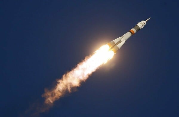 Από το κοσμοδρόμιο του Μπαϊκονούρ στο Καζακστάν εκτοξεύθηκε ρωσικός πύραυλος Soyouz που μεταφέρει έναν Ρώσο, έναν Αμερικανό και τον πρώτο Βρετανό αστροναύτη που θα διαμείνει στον Διεθνή Διαστημικό Σταθμό (ISS).