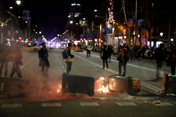Οι διαδηλωτές έριξαν μπουκάλια στην αστυνομία, έστησαν οδοφράγματα και έσπασαν καταστήματα στη Βαρκελώνη αναφέρει το Reuters. Το πρακτορείο κάνει λόγο για περίπου 6.000 ανθρώπους σύμφωνα με τα στοιχεία από την τοπική αστυνομία την οποία διαδηλωτές καταγγέλλουν για βία και αδικαιολόγητες προσαγωγές.