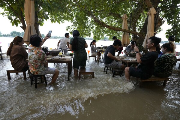 «Είναι υπέροχη η ατμόσφαιρα. Ήθελα να δοκιμάσω αυτή τη νέα εμπειρία», δήλωσε 24χρονος Siripoj Wai-inta απολαμβάνοντας το γεύμα του ενώ το νερό φτάνει μέχρι τα καλάμια του.