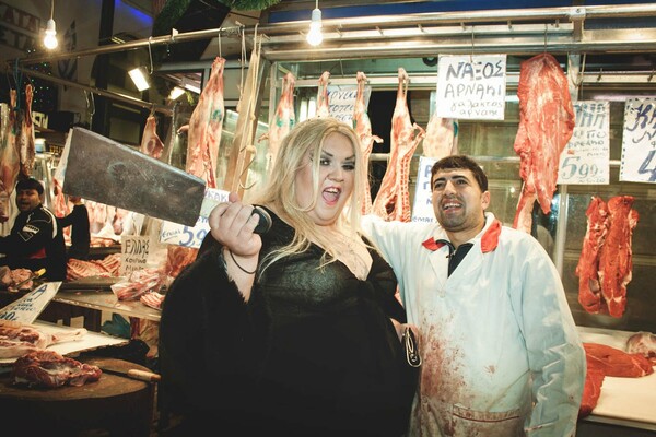 Κυκλοφορήσαμε μαζί της μεσημέρι Πέμπτης σε μια Ερμού γεμάτη κόσμο που εντυπωσιαζόταν περισσότερο από το μαύρο φόρεμα -που σερνόταν πάνω στις μαρμάρινες πλάκες και μάζευε σκουπίδια και ξερά φύλλα- και την ψεύτικη γούνα, παρά από την drag παράσταση. Οι πιο πολλοί πιθανώς να πίστευαν ότι ήταν γυναίκα. Δεν υπήρξαν καθόλου απρόβλεπτες αντιδράσεις, κανείς δεν τη σχολίασε, κανείς δεν φάνηκε να σοκαρίστηκε, ακόμα και όταν κυκλοφορούσε μέσα στα μαγαζιά και πόζαρε στο φακό κάνοντας αστείες γκριμάτσες. Οι περαστικοί έριχναν βιαστικές ματιές, άντε και κανένα πονηρό χαμόγελο όταν καταλάβαιναν ότι είναι drag και συνέχιζαν το δρόμο τους. Μέχρι που φτάσαμε στην Βαρβάκειο, με λιγοστό κόσμο και τους χασάπηδες σε κέφια. Φωτογραφήθηκαν μαζί της, της σφύριξαν, της έκαναν ακαταλαβίστικα σχόλια, ζητωκραύγασαν, έκαναν αστεία και σαματά και την έκαναν να αισθανθεί εμφανώς άβολα. «Γενικά δεν μπορώ τους άξεστους ανθρώπους. Δεν ήταν ρατσιστές, αλλά ήταν άξεστοι. Το ενοχλητικό είναι ότι δεν σέβονται» λέει η ίδια. Η συμπεριφορά τους ήταν ενθουσιώδης και παρόλο που η Ms Darlissa Berry τους παρεξήγησε δεν ήταν καθόλου κακή, μάλλον το αντίθετο. «Παρατήρησα ότι οι μανάβηδες ήταν πολύ πιο ήρεμοι από τους κρεοπώληδες» λέει. Η βόλτα της συνεχίστηκε μέσα από τα μανάβικα και κατέληξε στην Ευριπίδου. «Καταλαβαίνω ότι ίσως είναι το επάγγελμά τους τέτοιο, αλλά και πάλι δεν το δικαιολογώ. Παρόλα αυτά, το κέντρο της Αθήνας – το τρίγωνο – είναι εκείνο που παλεύει να γίνει η διαφορετικότητα αποδεκτή».