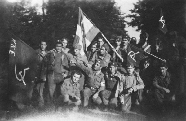 Σκηνές του Ερυθρού Σταυρού στο στρατόπεδο του Münster. Αδελφωμένοι έλληνες αντάρτες και αιχμάλωτοι σοβιετικοί στρατιώτες.