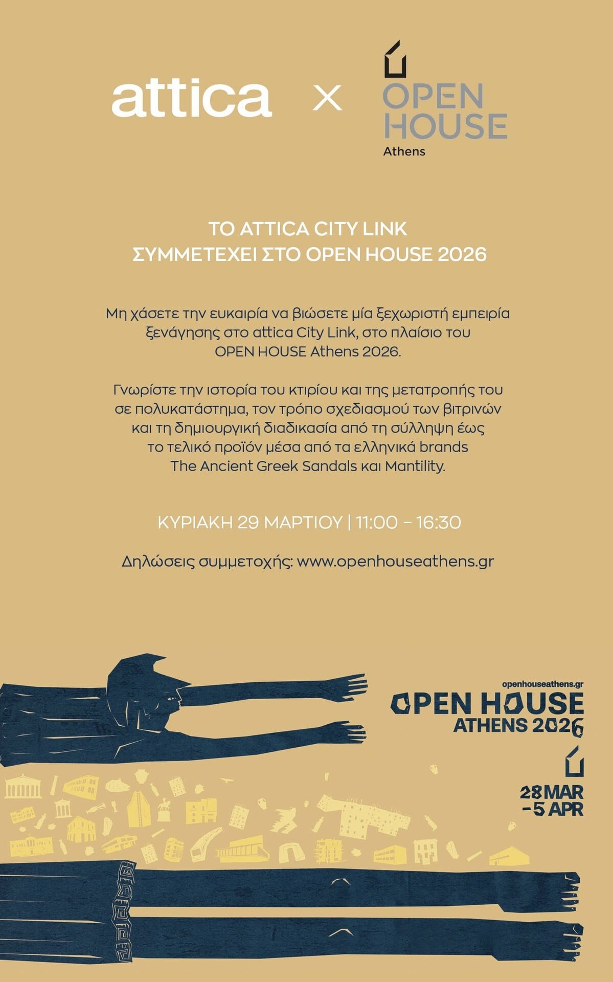 Στο πλαίσιο του OPEN HOUSE Athens 2026 και της δράσης MADE IN Athens, αυτή η μετάβαση από το τότε στο τώρα γίνεται ορατή μέσα από μια εμπειρία ξενάγησης που δεν στέκεται μόνο στην αρχιτεκτονική, αλλά αγκαλιάζει τη συνολική ταυτότητα του χώρου. «Για εμάς, το attica City Link είναι ένα ζωντανό κομμάτι της Αθήνας. Ένας χώρος που εξελίσσεται διαρκώς και φέρνει κοντά διαφορετικές εκφάνσεις της πόλης, από την ιστορία της μέχρι τη σύγχρονη δημιουργία», σημειώνει η Φοίβη Παναγιωτοπούλου, Chief Marketing Officer των πολυκαταστημάτων attica.