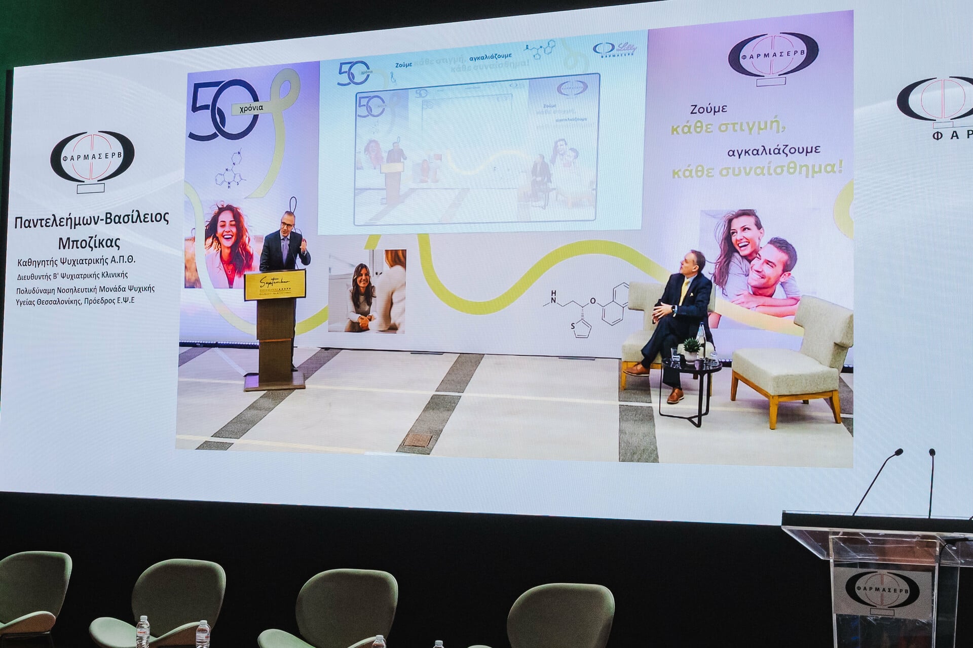 Την έναρξη της εκδήλωσης έκανε ο Πρόεδρος και Διευθύνων Σύμβουλος της Φαρμασέρβ–Λίλλυ, Διονύσης Φιλιώτης, ο οποίος δήλωσε: «Στη Φαρμασέρβ-Λίλλυ αισθανόμαστε μεγάλη υπερηφάνεια που όλα αυτά τα χρόνια δημιουργούμε και διαθέτουμε καινοτόμες και καταξιωμένες θεραπείες στη χώρα μας, που διαθέτουμε στους συμπολίτες μας φάρμακα που αλλάζουν τη ζωή τους, που συμμετέχουμε σε σημαντικές διεθνείς κλινικές μελέτες και συνεργαζόμαστε διαχρονικά με όλους εσάς τους εκλεκτούς επιστήμονες υγείας».