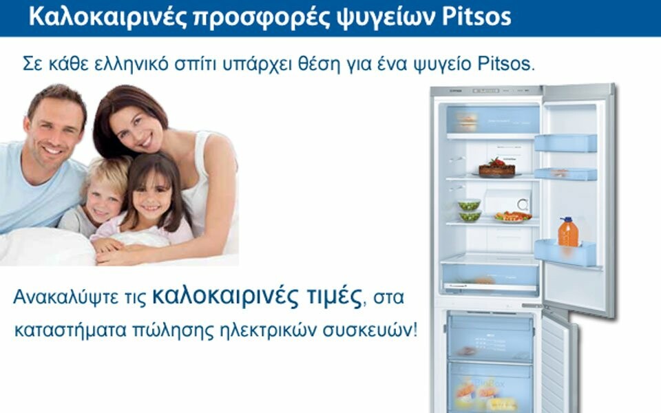 Από το 1865 βρισκόμαστε δίπλα στην ελληνική οικογένεια και παραμένουμε έμπρακτα δίπλα της σε όλες τις όμορφες και δύσκολες στιγμές της. Σήμερα, η Pitsos προσφέρει σε όλους τους Έλληνες ψυγεία σε μοναδικές τιμές.