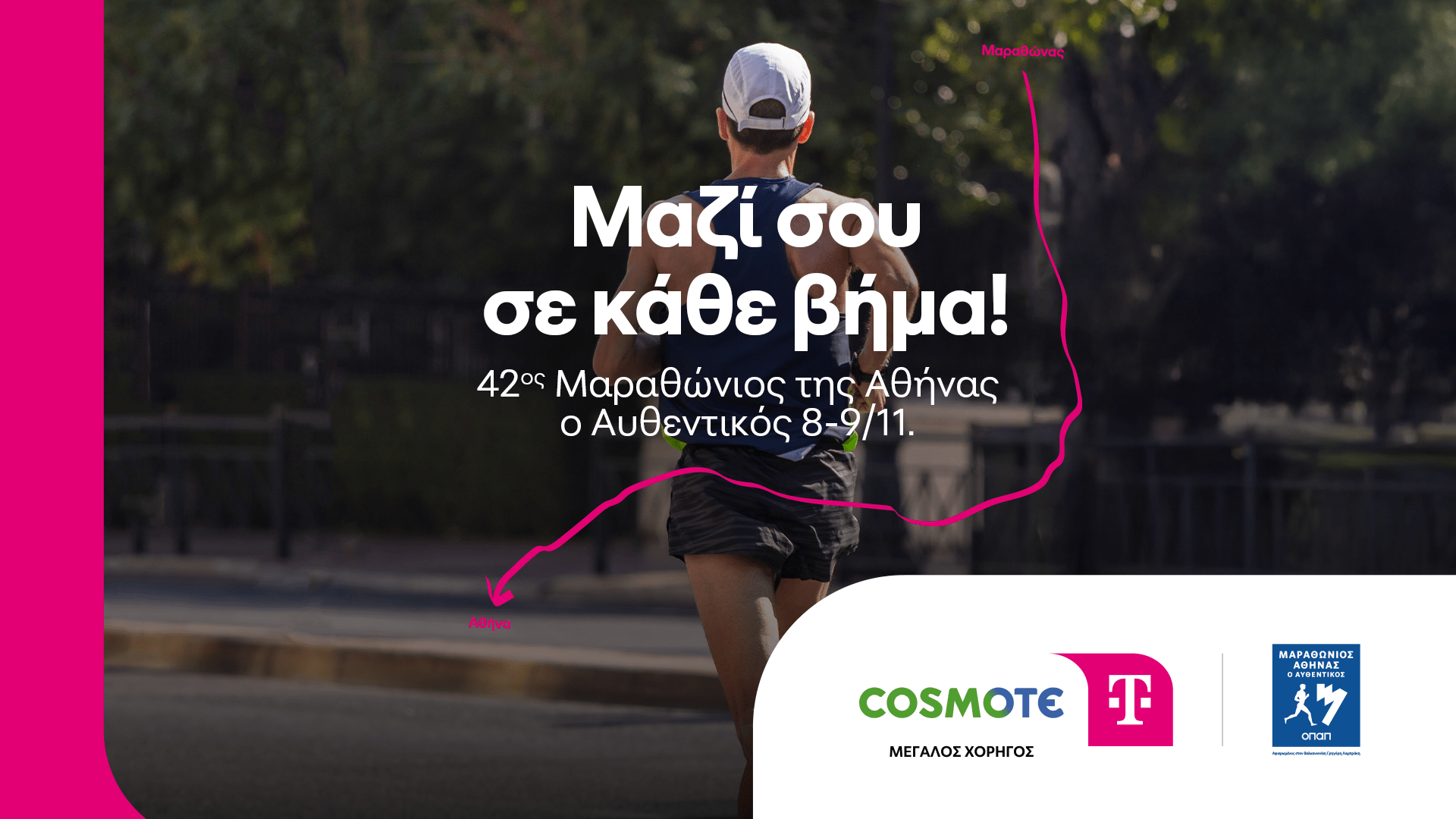 Τον 42o Μαραθώνιο της Αθήνας τον Αυθεντικό, ένα από τα κορυφαία αθλητικά και ιστορικά γεγονότα της χώρας, στηρίζει ως Μεγάλος Χορηγός του ΣΕΓΑΣ η COSMOTE TELEKOM. Η COSMOTE TELEKOM είναι, επίσης, Ονομαστικός Χορηγός του Αγώνα Δρόμου 5χλμ COSMOTE TELEKOM, του Αγώνα Παιδιών 1.200μ COSMOTE TELEKOM και του Αγώνα Special Olympics Hellas 1.200μ COSMOTE TELEKOM.