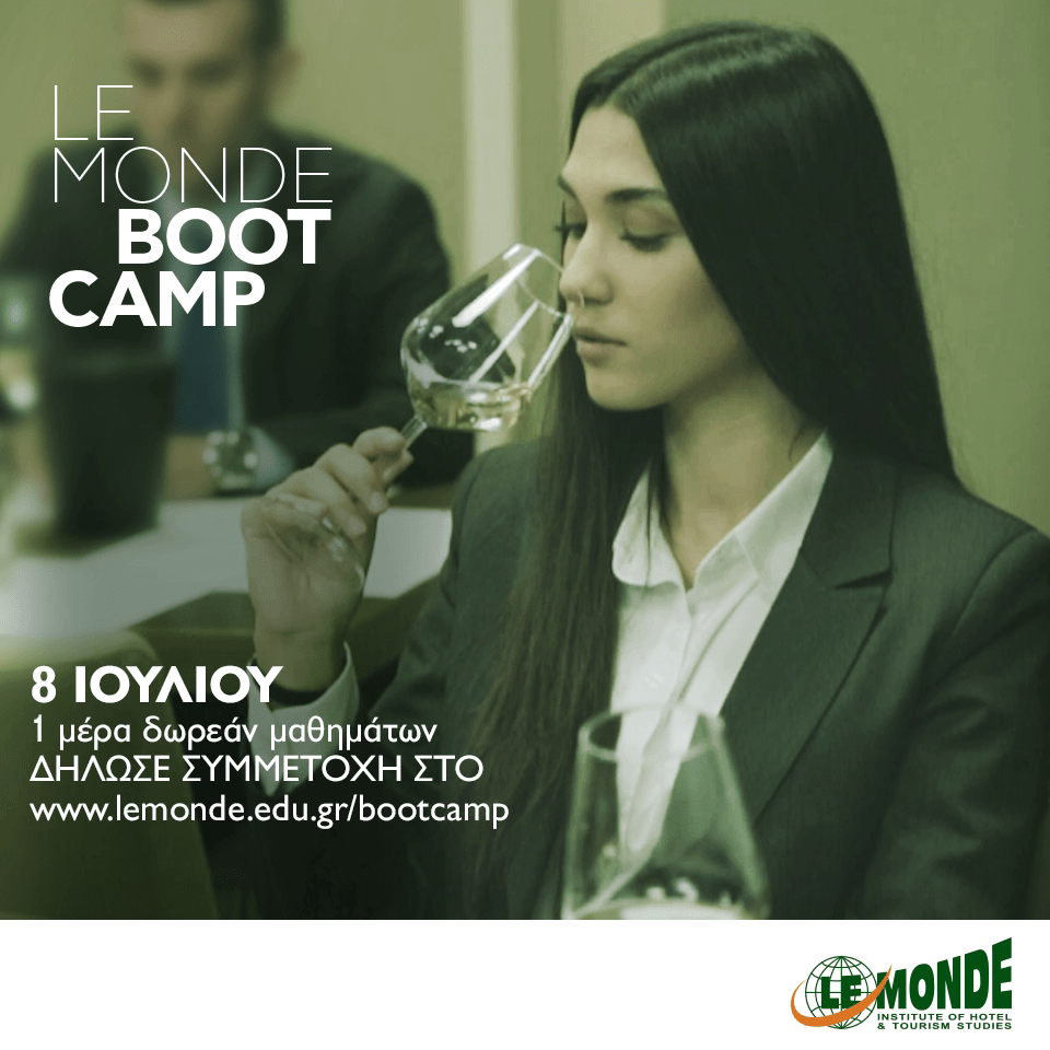 Στις 8 Ιουλίου, η LE MONDE θα υποδεχθεί στις υψηλών προδιαγραφών εγκαταστάσεις της στο Μοσχάτο, νέους και νέες επίδοξους Chefs, Pastry chefs & Hotel Managers, 17 έως 40 ετών, που αγαπούν τη μαγειρική, τη ζαχαροπλαστική & τα ξενοδοχειακά και επιθυμούν να ζήσουν από κοντά την εκπαιδευτική εμπειρία της LE MONDE. Οι τυχεροί που θα έχουν την ευκαιρία να παρακολουθήσουν το εντελώς δωρεάν εκπαιδευτικό LE MONDE Bootcamp, θα πρέπει να δηλώσουν συμμετοχή στο site www.lemonde.edu.gr/bootcamp έως τις 6/07.