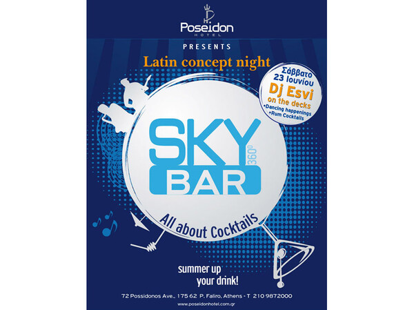 To Σάββατο 23 Ιουνίου η θερμοκρασία ανεβαίνει, ο φωτισμός χαμηλώνει, και οι ρυθμοί μας ξεσηκώνουν σε ένα ξέφρενο Latin party, με πολλά happenings, γύρω από την πισίνα του Skybar360ο .