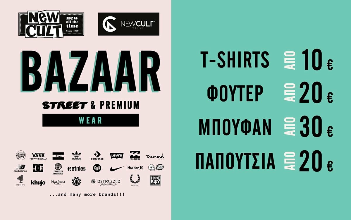 Μερικά από τα street & premium fashion brands που θα βρείτε στο bazaar της New Cult: