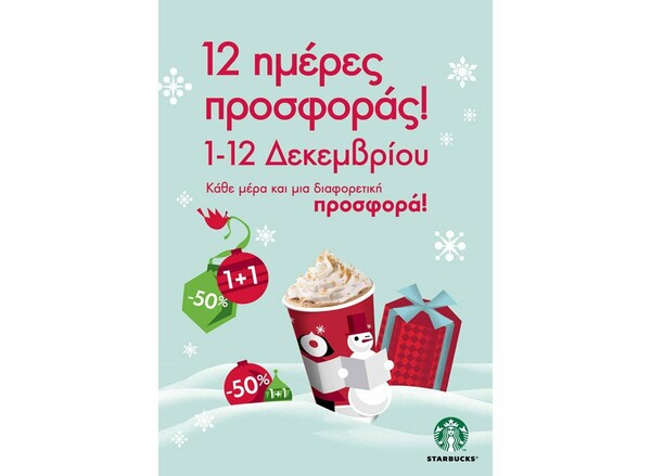 Τα Starbucks γιορτάζουν την αξία και τη χαρά της προσφοράς και από την 1η έως και τις 12 Δεκεμβρίου, μας προτείνουν κάθε μέρα και μια διαφορετική προσφορά.