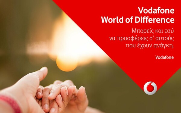 Για έκτη συνεχή χρονιά, η Vodafone υλοποιεί το πρόγραμμα Vodafone World of Difference και συμβάλλει έμπρακτα στο έργο κοινωφελών μη κερδοσκοπικών οργανισμών για την κάλυψη ουσιαστικών αναγκών της κοινωνίας. Και φέτος, το πρόγραμμα δίνει τη δυνατότητα σε 10 άτομα να προσφέρουν τις γνώσεις, τις ικανότητες αλλά και το πάθος τους για κοινωνική συνεισφορά, εργαζόμενοι για έξι μήνες στον κοινωφελή μη κερδοσκοπικό οργανισμό της επιλογής τους, ενώ η Vodafone καλύπτει το μισθό τους.