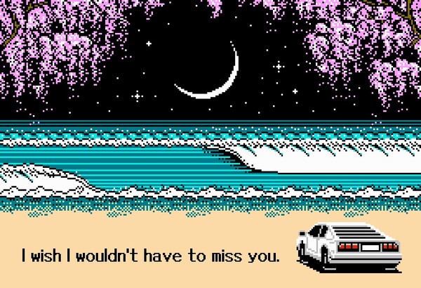 Αυτό όμως που τράβηξε την προσοχή παγκοσμίως (έχω δει αρκετά αφιερώματα σε καλά ξένα σάιτ) είναι η δουλειά του ως 8-bit Stories. Συνδυάζει έναν αγαπησιάρικο ρομαντισμό με τις ρετρό εικόνες διαστημικών βιντεοπαιχνιδιών απ' τα '80ς και λειτουργεί, κατά τη γνώμη μου, ως σχόλιο αλλά και ως αντίδοτο στον κυνισμό των σύγχρονων meme.
