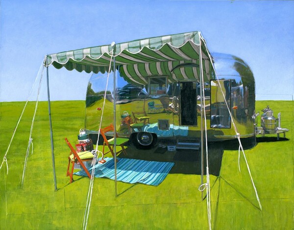 Αυτό το καλοκαίρι η σειρά της, "Garden Chairs", μας φέρνει στο μυαλό οικογενειακές 80s διακοπές σε camping, και αφήνει σχεδόν την ζέστη και την ραθυμία να "ξεπροβάλλουν" από το λάδι και τον καμβά.