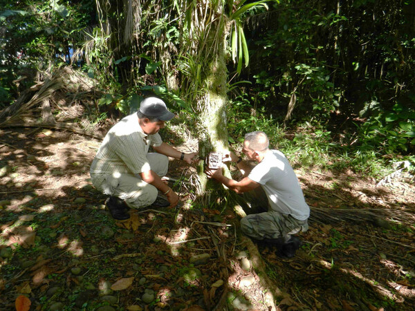 Facebook Twitter Τεχνικοί τοποθετούν μία "camera-trap".