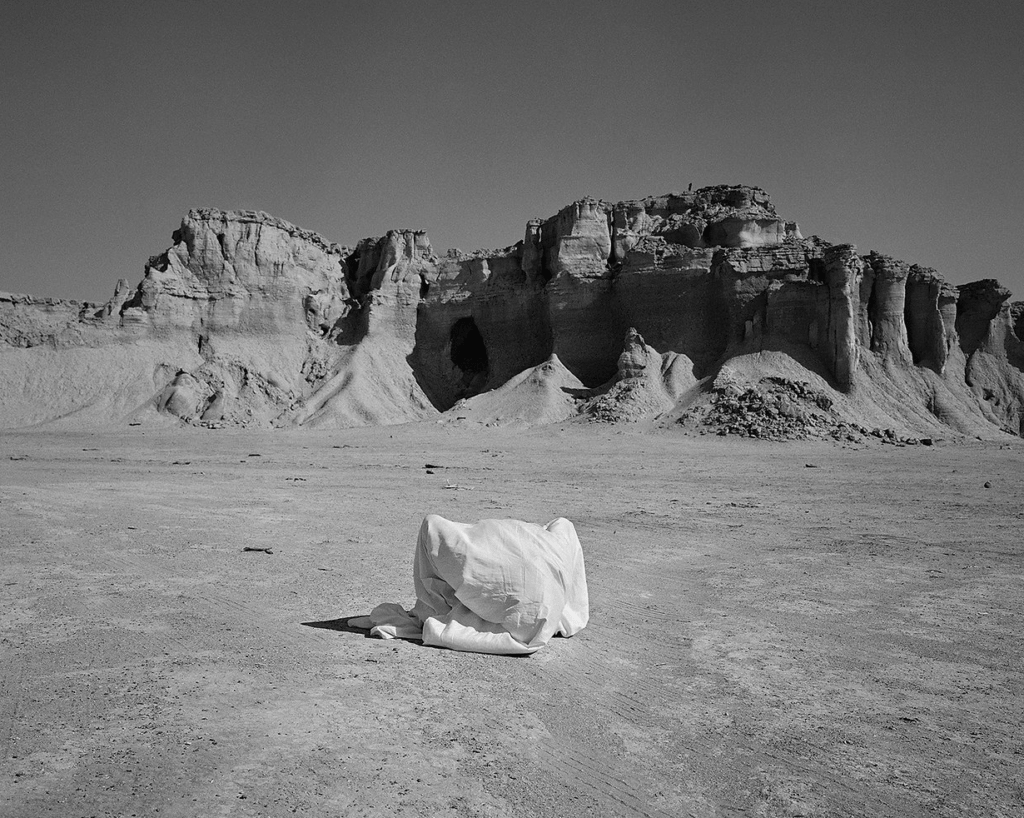 Οι φωτογραφίες αυτές, σαν παγωμένα θραύσματα ενός ρεύματος αέρα, εναλλάσσονται με βίντεο, όπου ακολουθούμε τον ρυθμό των κυματισμών που έρχονται από τον ουρανό, και με σχέδια φτιαγμένα από τους ντόποιους. "Το να φωτογραφίζεις το βουνό είναι σαν να φτιάχνεις ένα πορτρέτο του ανέμου", λέει. Αυτή η προσπάθεια αναπαράστασης βρίσκει την πιο εύγλωττη μορφή της στις εικόνες των ρούχων: τα αιχμαλωτίζει φουσκωμένα από τον αέρα, ανάλογα με την κατεύθυνση της αύρας. "Για τους ντόπιους, το πέπλο προστατεύει το άτομο από τον δαιμονισμό κατά τη διάρκεια των τελετών". Στη συνέχεια, το ενδιαφέρον της για τη φωτογραφική συλλογή του Gaëtan Gatian de Clérambault οδηγεί την Hoda Afshar να προεκτείνει τη σκέψη της σχετικά με το πως λειτουργούν οι πτυχώσεις με τους ανθρώπους που καλύπτουν.
