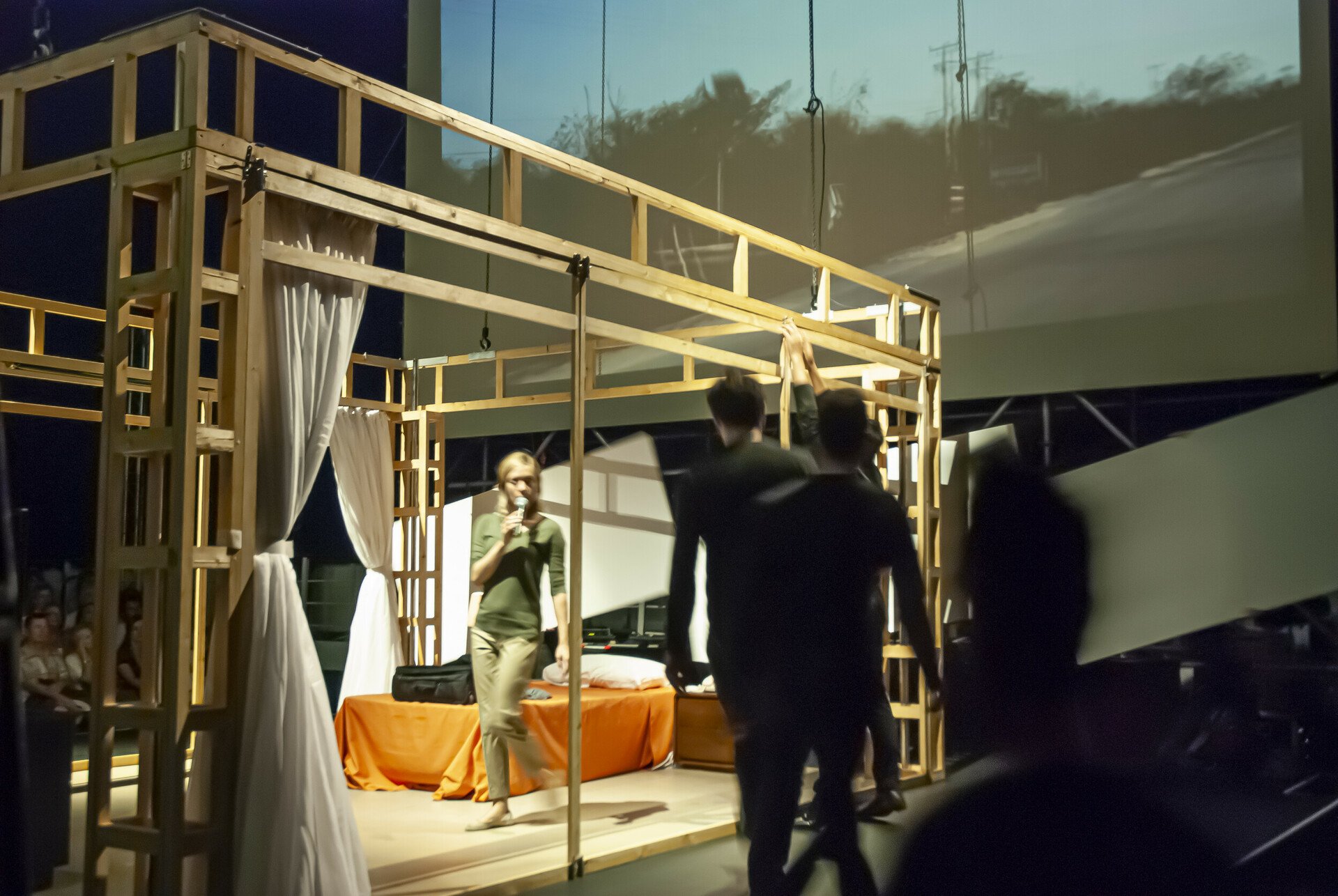 Το "Black Mirror" του Doug Aitken είναι ένας στοχασμός πάνω στην έλλειψη ριζών και την ακραία εικονικότητα της σύγχρονης ύπαρξης.Αποτελείται από μια εγκατάσταση βίντεο πολλαπλών καναλιών σε ειδικό χώρο κι από μια ζωντανή θεατρική παράσταση στο DESTE Project Space του Ιδρύματος ΔΕΣΤΕ, στο Σφαγείο, στο ελληνικό νησί της Ύδρας. Πρωταγωνιστεί η Chloë Sevigny ως νομάδα που διασχίζει τερματικούς σταθμούς αεροδρομίων, λόμπι ξενοδοχείων και γραφεία ενοικίασης αυτοκινήτων, επικοινωνώντας αγωνιωδώς και ταξιδεύοντας σε μεγάλες αποστάσεις για σύντομες συναντήσεις.Η εγκατάσταση βίντεο γυρίστηκε στην Αθήνα και την Ύδρα και γύρω από αυτήν, καθώς και στο Κανκούν του Μεξικού, στην Αλμπουκέρκη και στο Γκάλοπ του Νέου Μεξικού, στο Φλάγκσταφ και στο Αρκοσάντι της Αριζόνα και στο Παλμ Σπρινγκς της Καλιφόρνια.Η παράσταση ανέβηκε σε μια φορτηγίδα στα ανοιχτά των Αθηνών και συμμετείχαν η Sevigny, τραγουδίστριες gospel, στρίπερ και μουσικοί, το underground ροκ ντουέτο No Age του Λος Άντζελες καθώς και Έλληνες μουσικοί κρουστών.