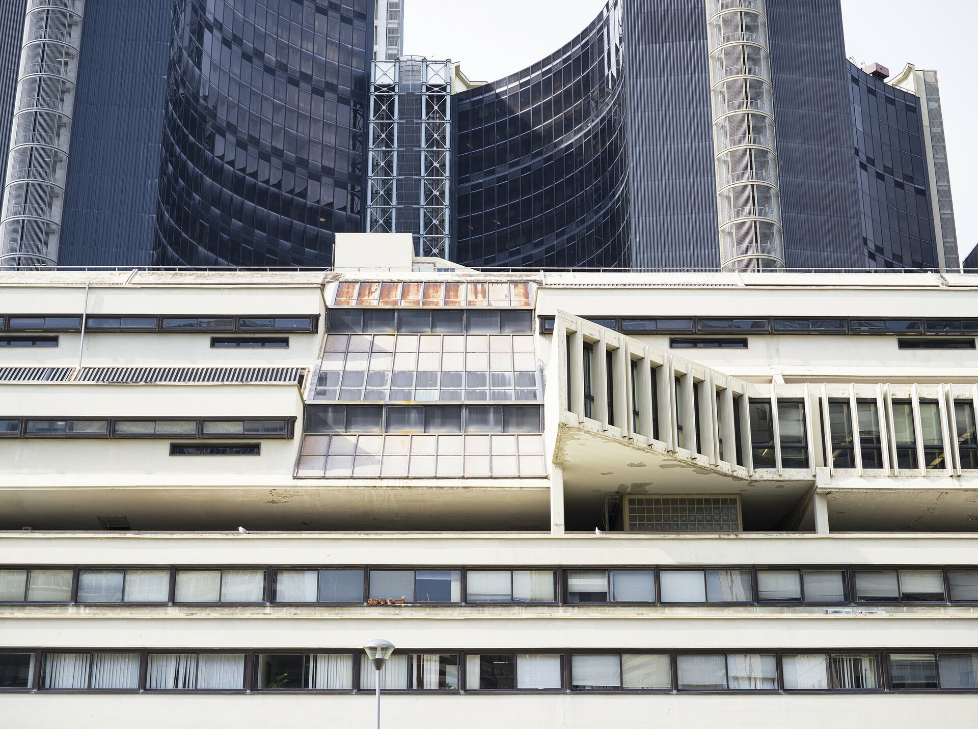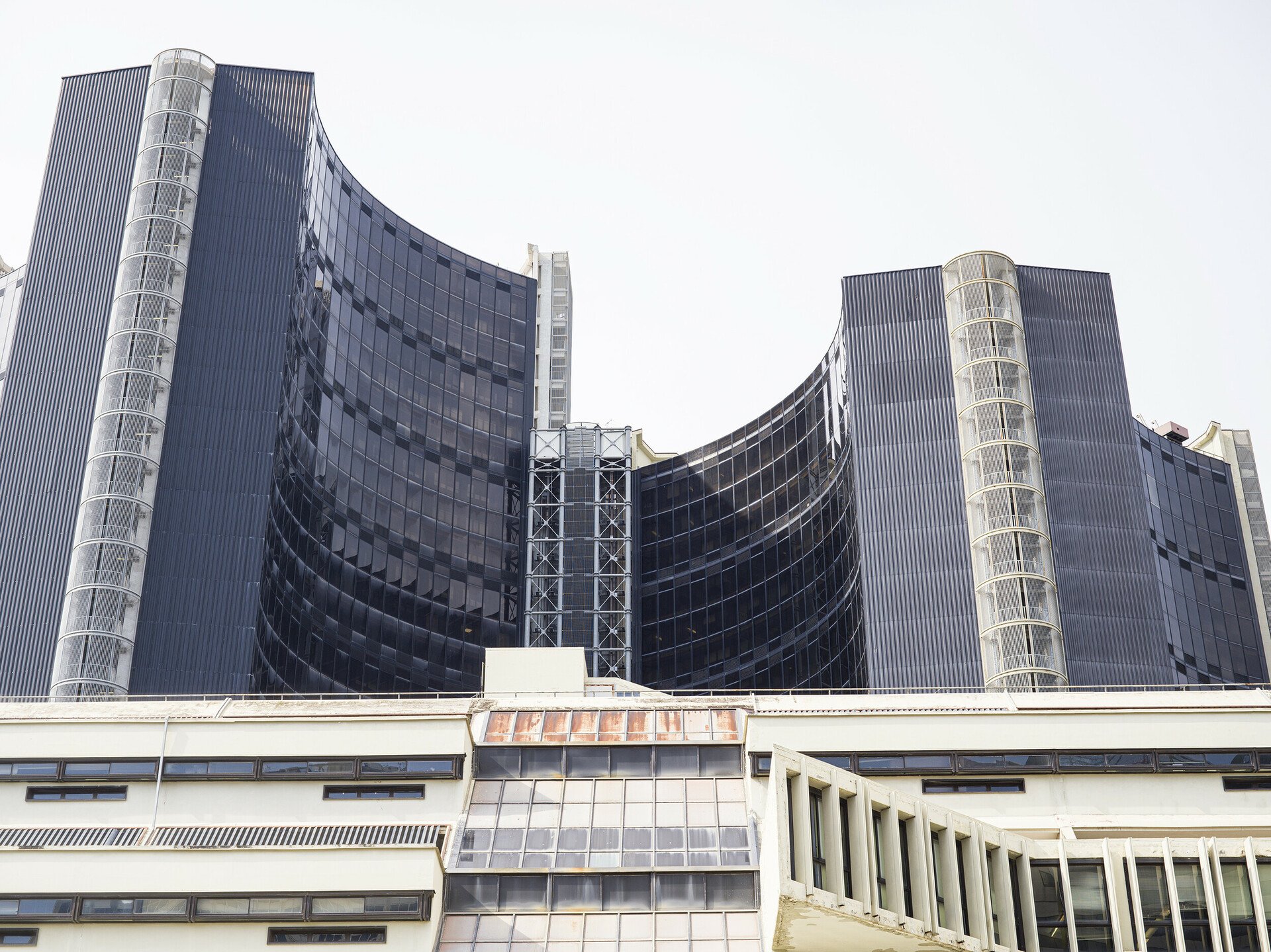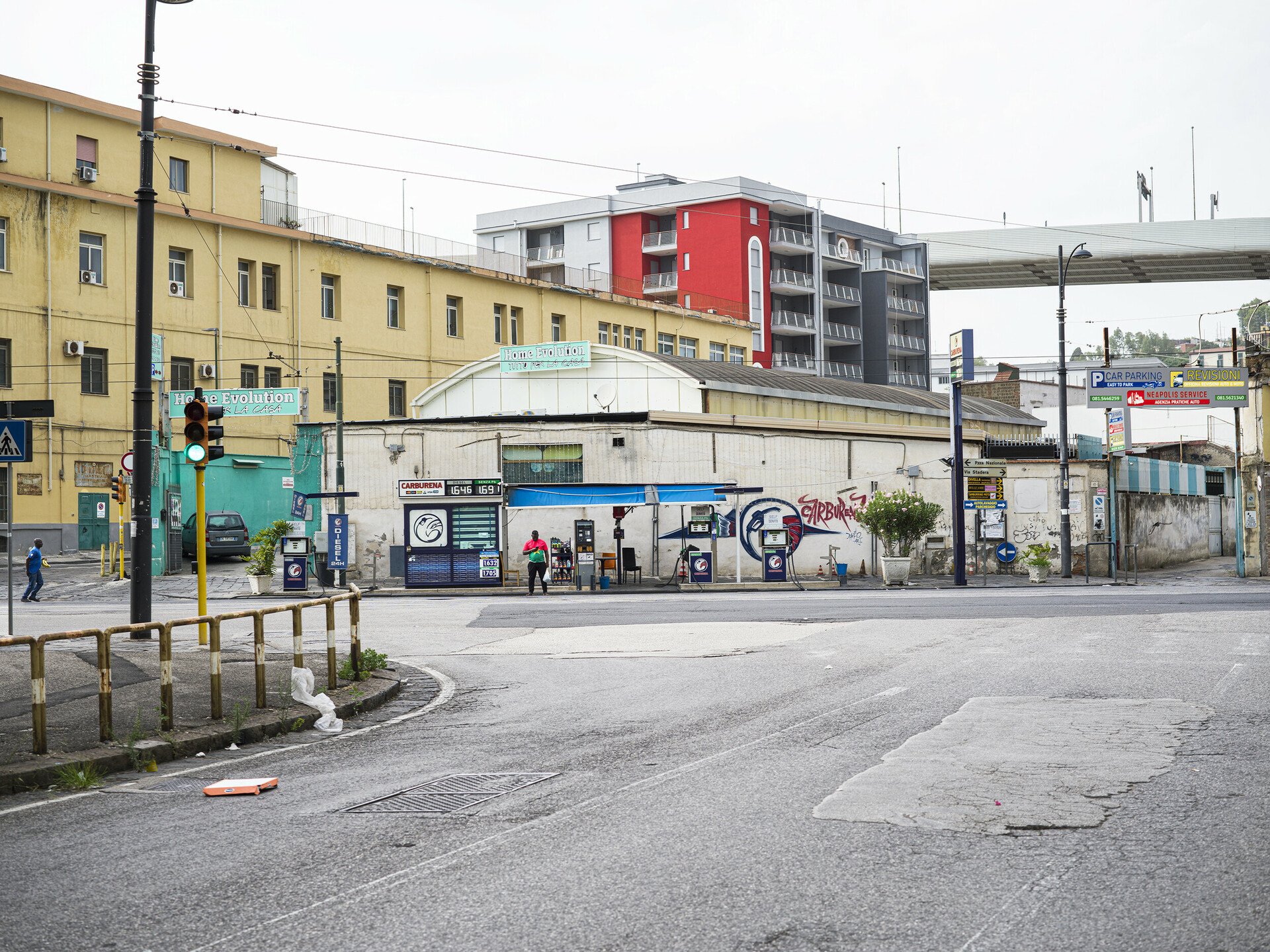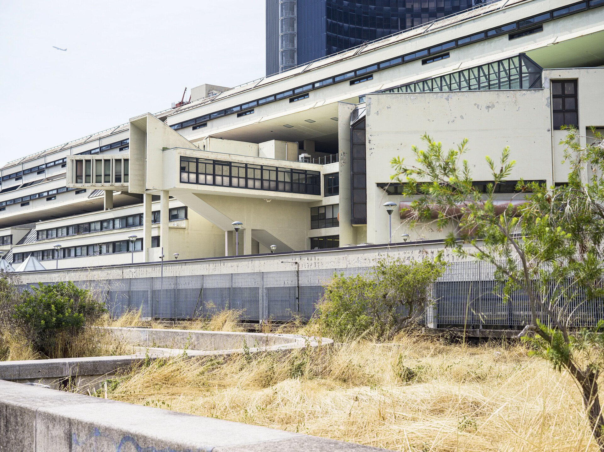 Η έξοδος του μετρό προς τα δικαστήρια και το αστικό συγκρότημα Centro Direzionale Napoli που σχεδίασε κυρίως ο Kenzo Tange, και στο οποίο συνέβαλαν με ουρανοξύστες και άλλοι αρχιτέκτονες, όπως ο Renzo Piano (το κτίριο της Olivetti).