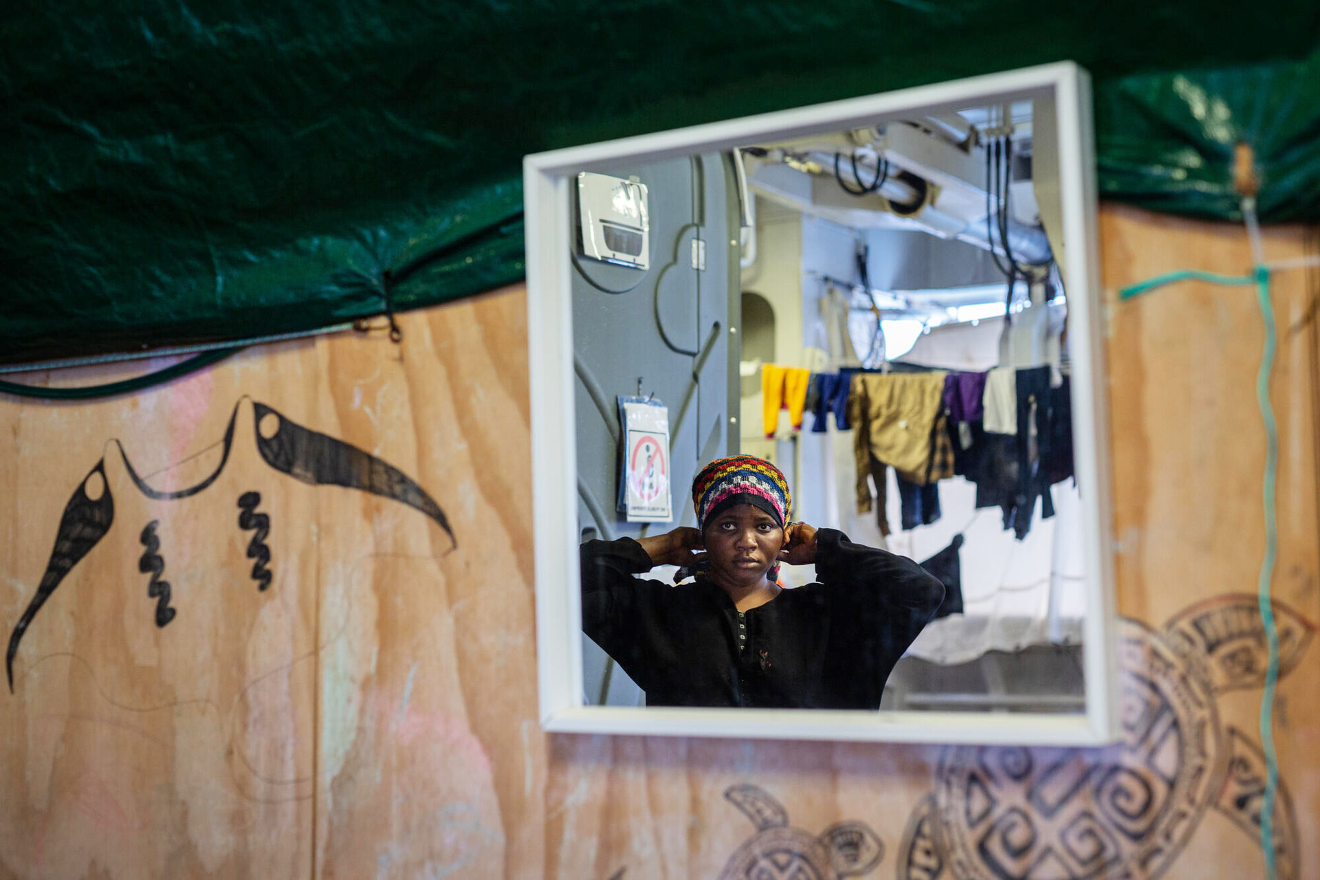 Στη συνέχεια μας μετέφεραν σε άλλο μέρος, όπου με κράτησαν αιχμάλωτη για 10 μήνες. Μας χτυπούσαν αλλά μας κρατούσαν ζωντανούς για να μπορούν να μας αποσπάσουν χρήματα. Τελικά με άφησαν ελεύθερη επειδή δεν μπορούσα να πληρώσω άλλα λύτρα. Λίγες μέρες αργότερα έφτασα στην ακτή και επιβιβάστηκα σε μια λαστιχένια βάρκα μαζί με πολλούς άλλους ανθρώπους για να διασχίσουμε τη θάλασσα. Είναι η ίδια βάρκα στην οποία με βρήκατε".
