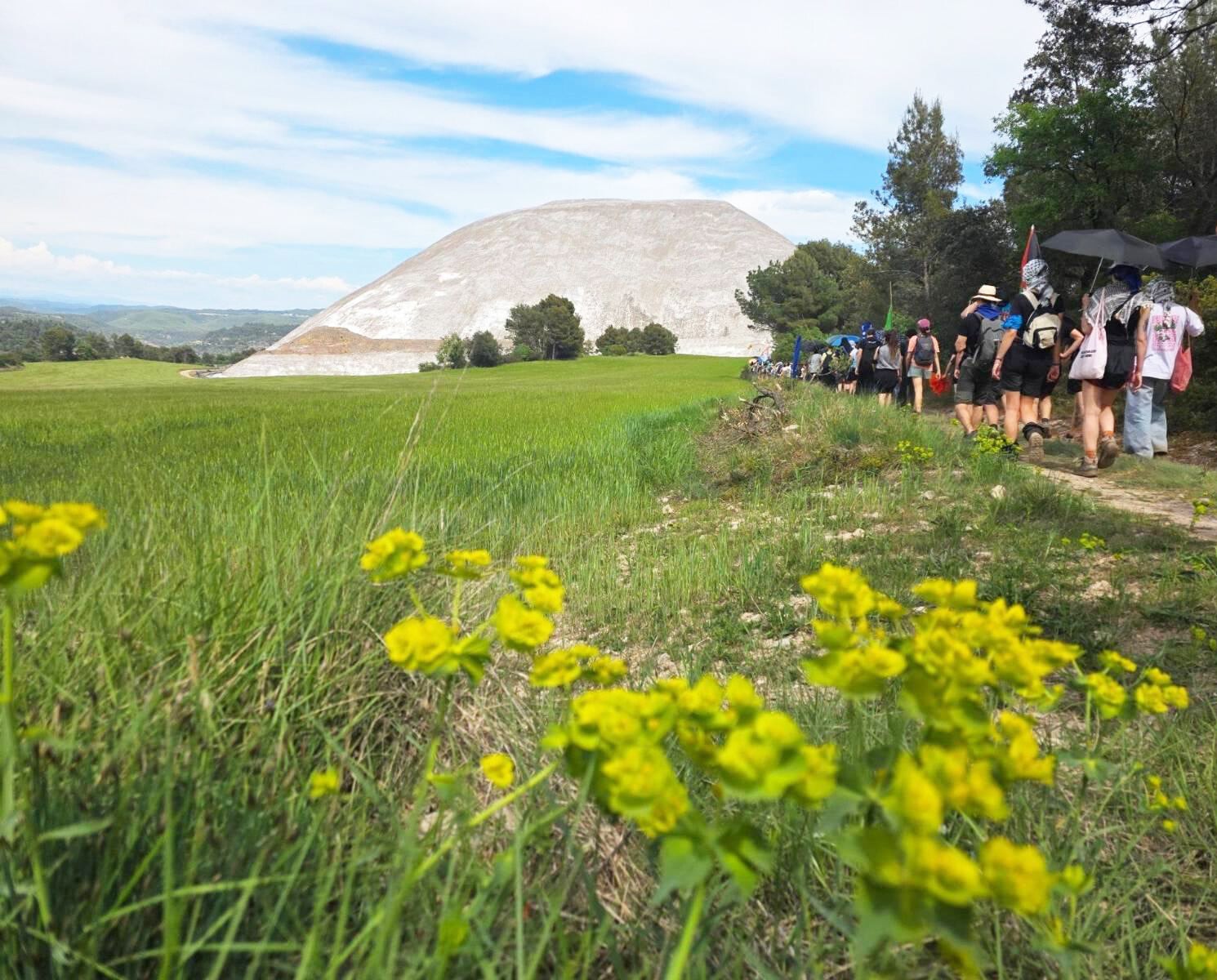Στο τέλος της εβδομάδας, περίπου εκατό άτομα καταφθάνουν ακριβώς κάτω από τη μύτη των αρχών και στήνουν μια κατασκήνωση στα χωράφια ενός εκτροφέα αγελάδων ράτσας Salers, του οποίου τα ρυάκια έχουν γίνει υφάλμυρα από τα νερά του ορυχείου. Η τοποθεσία, σε μια πανέμορφη κοιλάδα, παραμένει μυστική μέχρι το απόγευμα της Παρασκευής, ενώ υποδομές αναπτύσσονται με την πολύπλευρη ενέργεια των πυκνών τοπικών ακτιβιστικών δικτύων και την υποστήριξη της "δια-συλλογικής κουζίνας" που ήρθε από τη νοτιοδυτική Γαλλία. Όπως σε όλες τις μεταλλευτικές περιοχές, το να πάρει κανείς δημόσια θέση ενάντια σε έναν από τους μεγαλύτερους εργοδότες της περιοχής είναι επικίνδυνο, όσο τοξικός κι αν είναι αυτός κατά τα άλλα. Κι όμως, ένας πολιτιστικός σύλλογος από το Sant Pedor είναι αυτός που δίνει το σύνθημα για να ξεκινήσει το πανηγύρι το απόγευμα της Παρασκευής σε αυτό το χωριό που βρίσκεται στην καρδιά της ζώνης που πλήττεται από το ορυχείο ποτάσας. Με μια παράσταση παραδοσιακών χορών υποδέχεται τους διαδηλωτές και τις διαδηλώτριες που έφτασαν από τη Βαρκελώνη, την υπόλοιπη Καταλονία, ακόμη και από τη Γαλλία. Μετά την παράσταση, μερικές εκατοντάδες άτομα ξεκινούν σε πορεία υπό τους ήχους του συνθήματος "Boycott Israel – Boycott ICL" για να φτάσουν στην έτοιμη πλέον κατασκήνωση, σε απόσταση περίπου μίας ώρας με τα πόδια. Συνελεύσεις και παραδοσιακές καταλανικές πανκ συναυλίες ζωντανεύουν στη συνέχεια τη βραδιά.