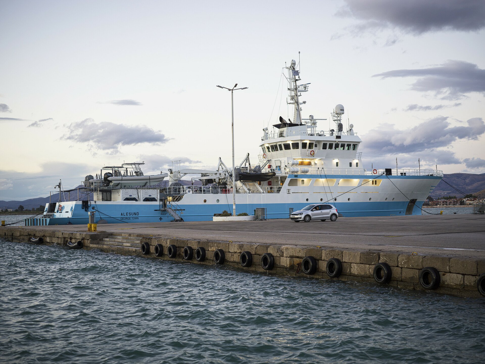 'Ενα πλοίο φεύγει... Το Alesund. Πρώην σκάφος της Νορβηγικής Ακτοφυλακής για την προστασία της αλιείας. Ανήκει τώρα στην κατηγορία των superyachts.