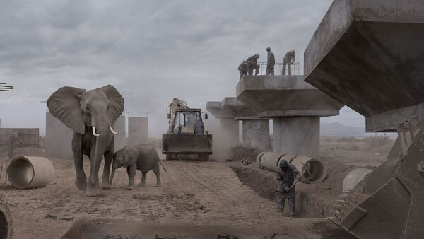 Ο Μπράντ απέκλινε από τη συνήθη μεθοδολογία του καθώς συμβιβάστηκε με την χρήση της έγχρωμης και ψηφιακής φωτογραφίας που του ήταν ως τώρα ξένη. Οι δεκαεπτά φωτογραφίες που παρουσιάζονται εδώ (από ένα σύνολο σαράντα πέντε) ζωντανεύουν στους μεγάλους κρεμ τοίχους της γκαλερί, με τους πίνακές του να είναι γεμάτοι από καθαρές λεπτομέρειές και έντονο, εξπρεσιονιστικό φωτισμό. Η κλίμακά τους επίσης είναι επική. Η εικόνα River of People with Elephants (2018), η μεγαλύτερη της έκθεσης, με τις εντυπωσιακές διαστάσεις των 3,5 μ. επί 1,3μ, ήθελε τον δικό της τοίχο στο βάθος της κεντρικής αίθουσας. Σκοτεινά σύννεφα εκτείνονται στο πάνω μέρος της φωτογραφίας, ενώ ο ανθρώπινος "ποταμός" του τίτλου σέρνεται από το κέντρο ως το πρώτο πλάνο. Η συμπεριφορά των ηθοποιών υποδηλώνει εδώ μία αδύναμη παραίτηση - κεφάλια σκυμμένα και μάτια χαμηλωμένα - που αφήνει ασυγκίνητο τον ελέφαντα στα αριστερά τους, το οποίο προτάσσει το σώμα του αμυντικά μπροστά από το μικρό του σαν να τον προστατεύει (αυτόν και τις επόμενες γενιές) από την ανθρωπότητα.