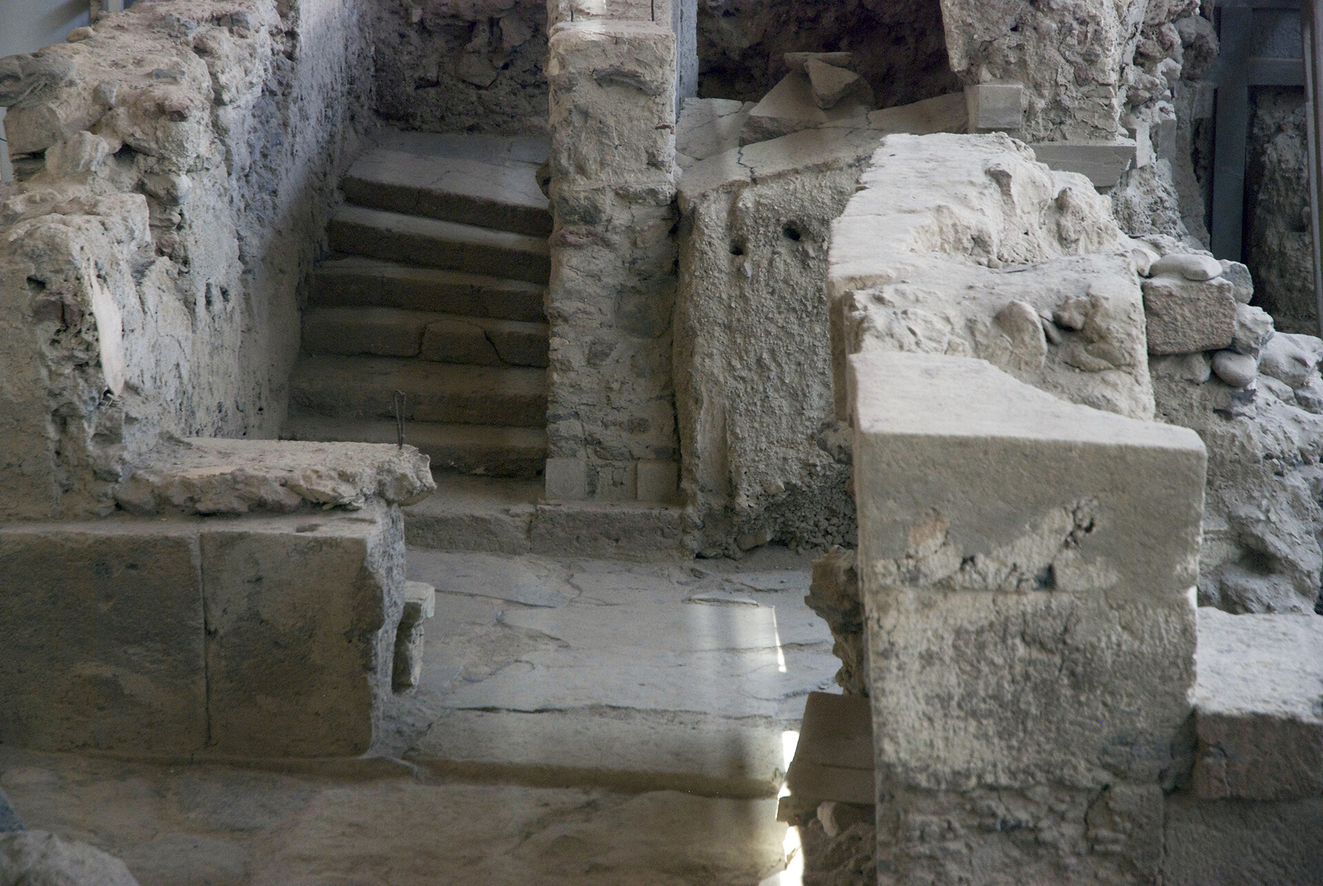 Επάνω στα αποκαλυπτόμενα μνημεία δεν γίνονται επεμβάσεις, παρά μόνον όσες απαιτούνται για τη στερέωσή τους και για τη διάσωση των ποικίλων μαρτυριών, της καταστροφής συμπεριλαμβανομένης.