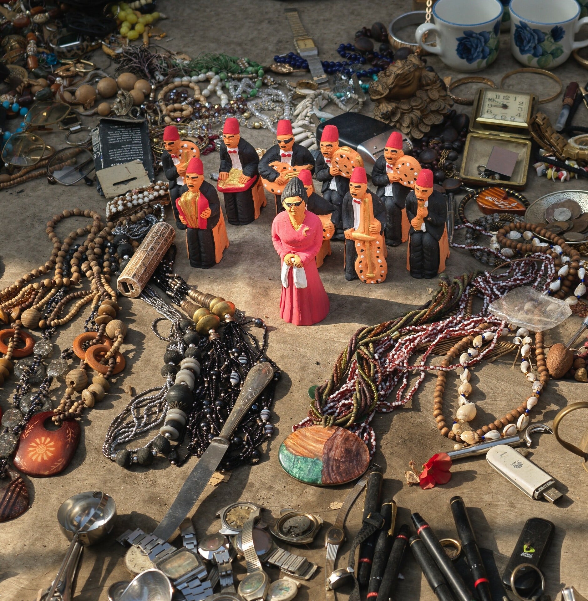 Βρίσκεις και ωραία πράγματα. Πολύ Oυμ Καλσούμ, ελληνικούς δίσκους γραμμοφώνου, Σαντάμ Χουσεΐν σε ρολόι χειρός, χαϊμαλιά και μεγαλειώδεις οικοσκευές από φτηνά υλικά, Φαραώ τσέπης και την Ακρόπολη Αθηνών, αμέτρητες φωτογραφικές μηχανές αναλογικές, ως επί το πλείστον άχρηστες, ρούχα του καλαθιού, πού και πού ένας θησαυρός: ασπρόμαυρα οικογενειακά άλμπουμ από τα φίφτις, πριν φύγουν οι ξένοι με τη δολερή ευζωΐα τους. Στους παραδρόμους, η ζωή κανονικά. Σιδηρουργεία, ράφτες, κουρεία και καφενεία. Περνάω, χαμογελάνε όλοι ― η καλοσύνη τους ρεμιξάρει το ρυθμό του κόσμου μου: πράγματα που στην Αθήνα θεωρούσα σημαντικά, γίνονται μονοσήμαντα. Θέλω να σκίσω σα σεντόνι το πρωινό φως, να δω τον ήλιο να συγκρούεται στη σκόνη των φίκων.