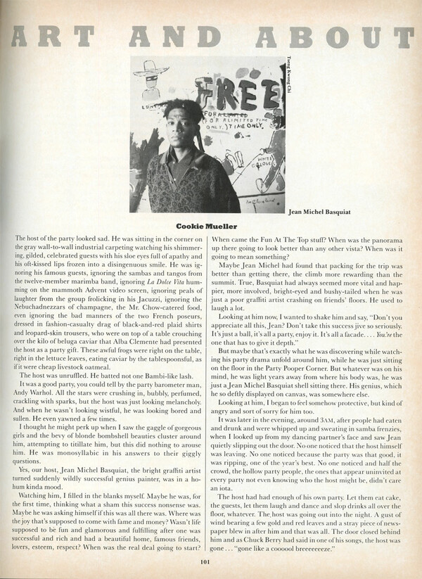Αυτή η γυναίκα στην πασίγνωστη φωτογραφία της Ναν Γκόλντιν είναι η Cookie Mueller. Αν και δεν το επιζήτησε και ήταν λίγο απ΄όλα, άφησε βαθιά ίχνη στο αμερικανικό αντεργκράουντ. Το ηλεκτρικό της πέρασμα. Πέθανε στα 40 από aids.