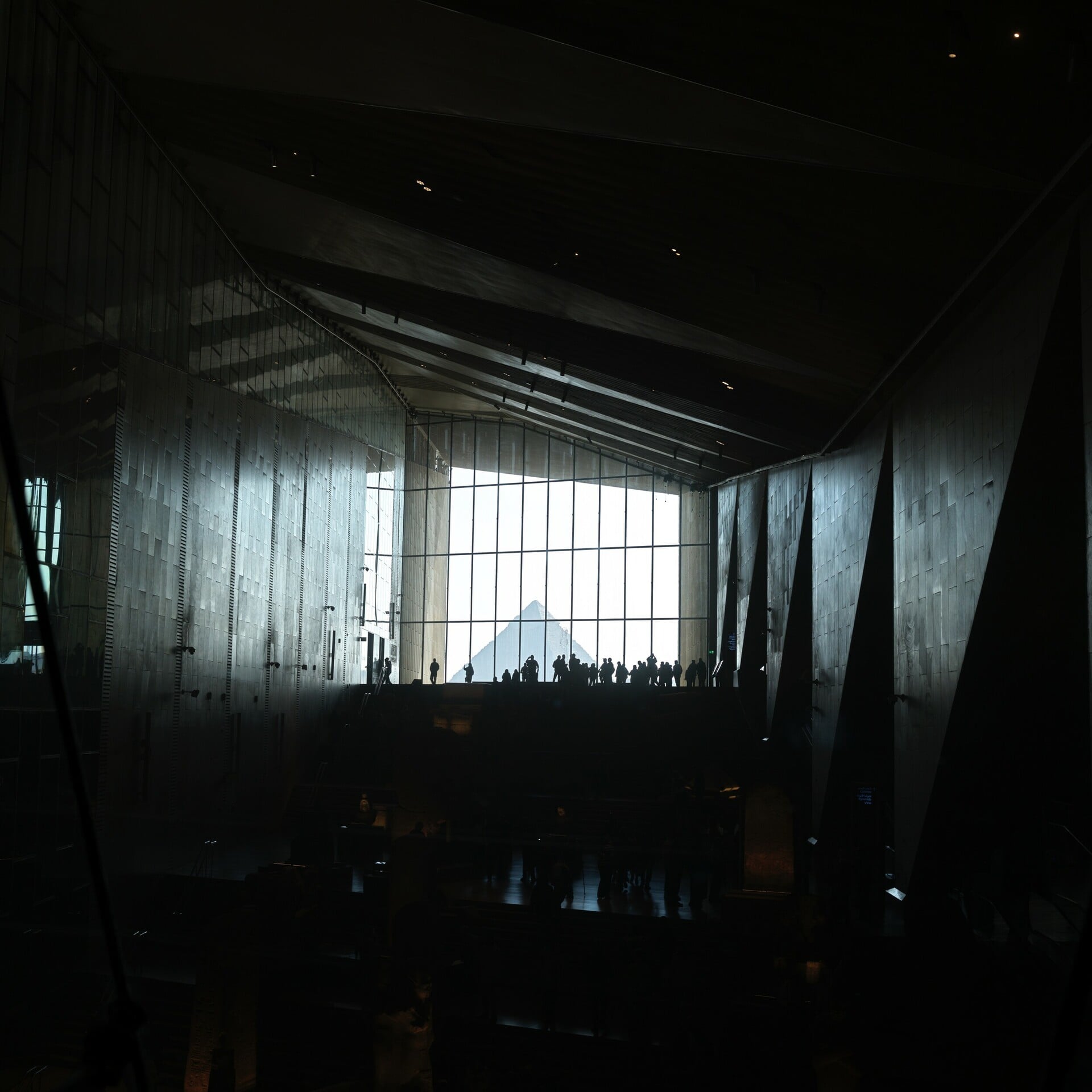 Η αρχιτεκτονική του GEM είναι μοναδική, τρίγωνα μέσα σε άλλα τρίγωνα. Το γραφείο που κέρδισε τον παγκόσμιο διαγωνισμό (ανάμεσα σε 1.500+ συμμετοχές) είναι το Heneghan Peng Architects από το Δουβλίνο. Όλα κοιτάνε και εκβάλλουν στις τρεις πυραμίδες της Γκίζας – παρόν και παρελθόν σαν να αγκαλιάζονται. Το βράδυ, η πρόσοψη, φτιαγμένη από διάφανο αλάβαστρο και τοπικό ασβεστόλιθο, φωτίζεται από μέσα, κάνοντας το κτίριο να μοιάζει με έναν φωσφορικό αστερισμό, πεσμένο απ' το διάστημα στην άμμο της ερήμου.