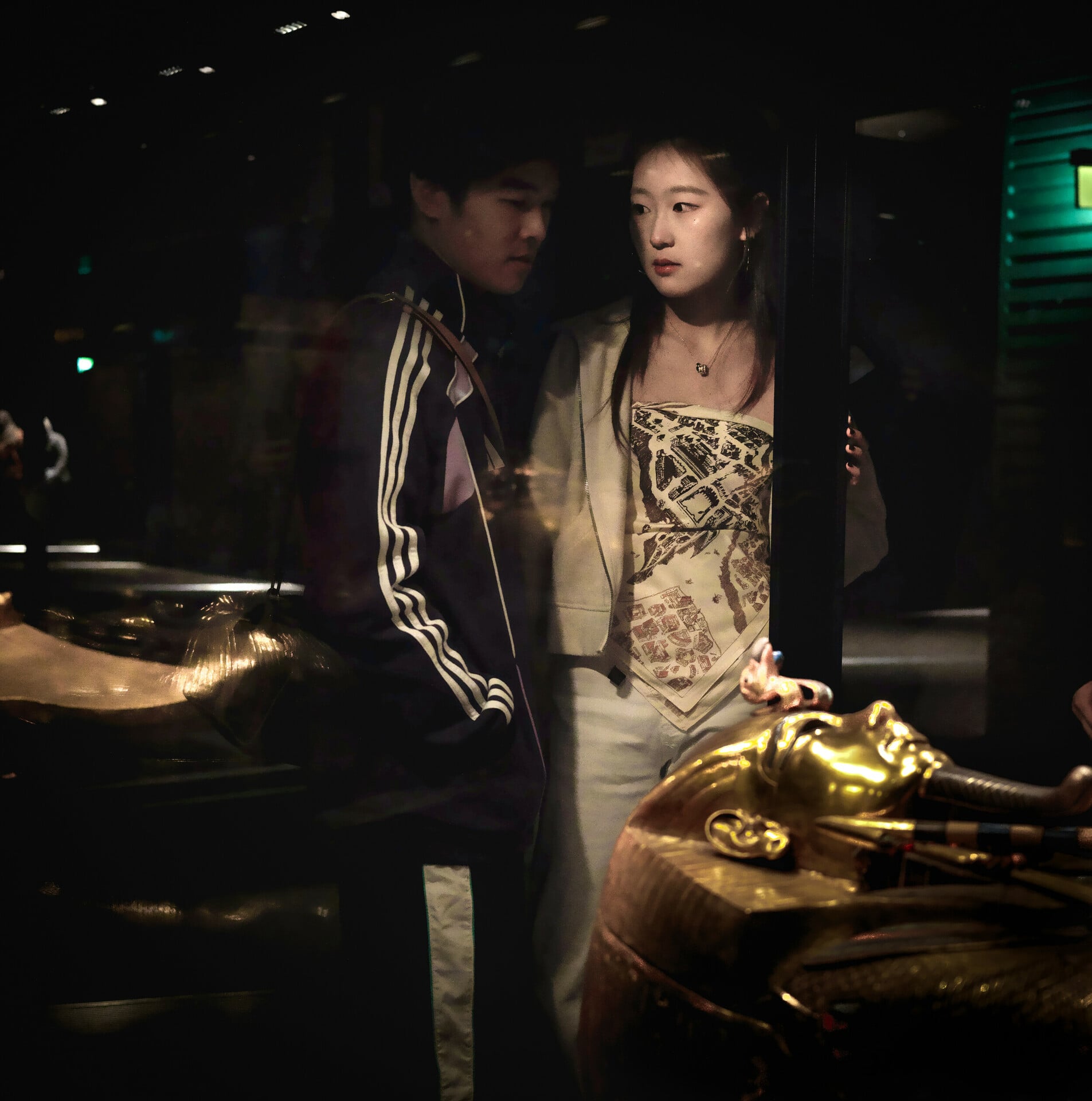 Λάτρευα το παλιό Μουσείο στη Ταχρίρ με το ρόδινο χρώμα και τον αποικιακό αέρα (τις κιτρινισμένες καρτέλες στη γραφομηχανή ή ακόμη και χειρόγραφες), τις ξύλινες προθήκες με τζάμι, την ευκολία να χαϊδεύεις λαθραία έναν θεό από γρανίτη. Αλλά το GEM είναι άλλου είδους εμπειρία. Ολοκληρωτική. Είχα την πρόνοια να πάω κατευθείαν στις αίθουσες του Τουταγχαμών, και έπραξα σοφά, γιατί 3 μέρες δεν φτάνουν να πάρεις μυρωδιά από το Μουσείο. Τουλάχιστον απόλαυσα τα νέα εκθέματα, όλες τις άμαξές του μαζί (για τελετές ή πόλεμο), τις χρυσοποίκιλτες σαρκοφάγους (αδόκιμη λέξη αφού εδώ η σάρκα δεν φαγωνόταν, γι’ αυτό και οι Αιγύπτιοι αποκαλούσαν τα κιβούρια τους «Κύριους της ζωής»), τα παιχνίδια του και τα μπαστούνια του, τον αριστουργηματικό χρυσό θρόνο με τον ίδιο και τη σύζυγό του, Ανχεσενάμουν, κάτω από τις ακτίνες του θεού Ήλιου – τα περιδέραιά του, τα φυλαχτά που απέθεσαν πάνω στο στήθος του και την καρδιά, τα χρυσά δάχτυλα, τα δαχτυλίδια, το αλαβάστρινο κουτί όπου εγκιβώτισαν τα σπλάχνα του…