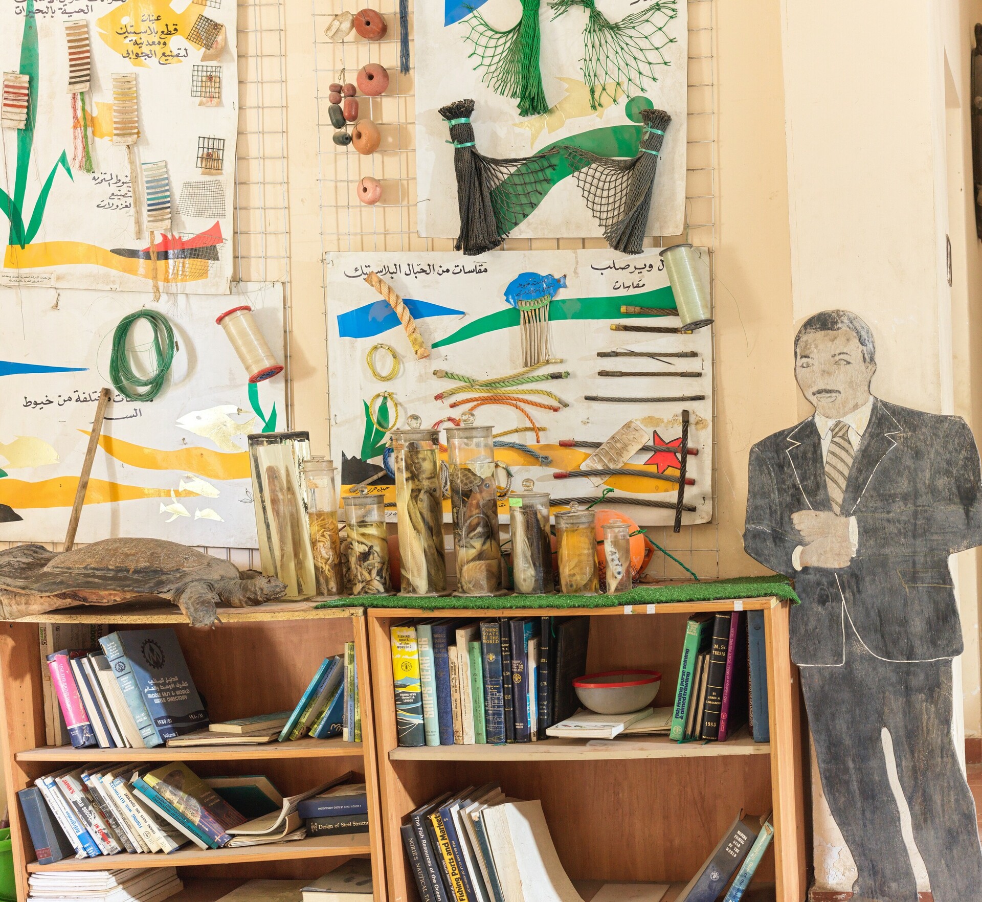 Για να συμπληρώσει το cabinet of curiosities, ο αρχιτέκτων του grotto ενέθεσε στους τοίχους βιτρίνες με νεκρά ψάρια στη φορμόλη και άλλα θαλασσινά πτώματα.