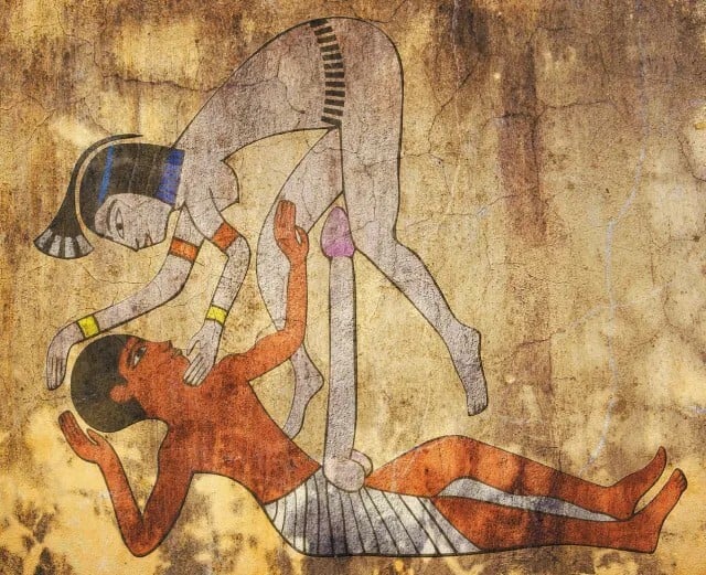Το ζευγάρωμα του θεϊκού αυτού ζεύγους αποτυπώνεται σε πολλούς αρχαίους παπύρους. Τα σχέδια δείχνουν τη γυμνή θεά Νουτ να σχηματίζει τόξο πάνω από τον θεό της Γης, ο οποίος είναι ξαπλωμένος και με το πέος του σε στύση σημαδεύει τον ουρανό. Για τους Αιγυπτίους, αυτό δεν ήταν πορνογραφία, ήταν ένας θρησκευτικός χάρτης του σύμπαντος.